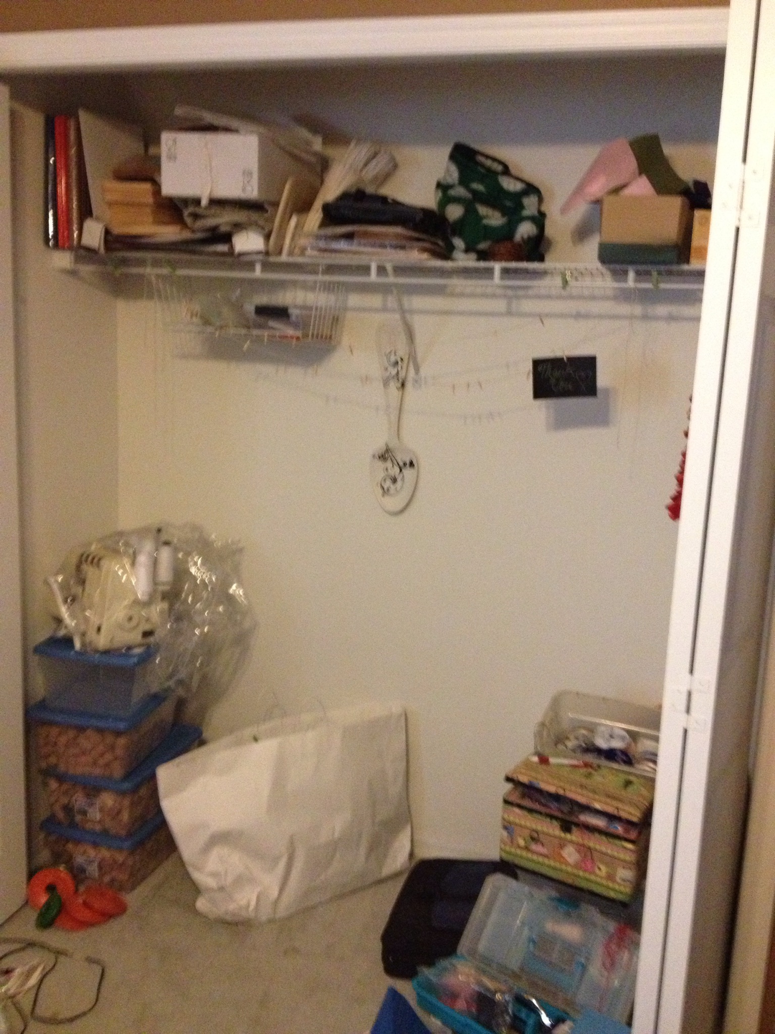 4. The Craft Closet/Someday Nursery Closet: Since we may, or may not be here when we have children, I need this to be a versatile closet. It’s in our office/craft room, and clearly it’s a hot mess. I need to get some organizational units or the closet organizer. It would be helpful if this does turn into a nursery in the future.
