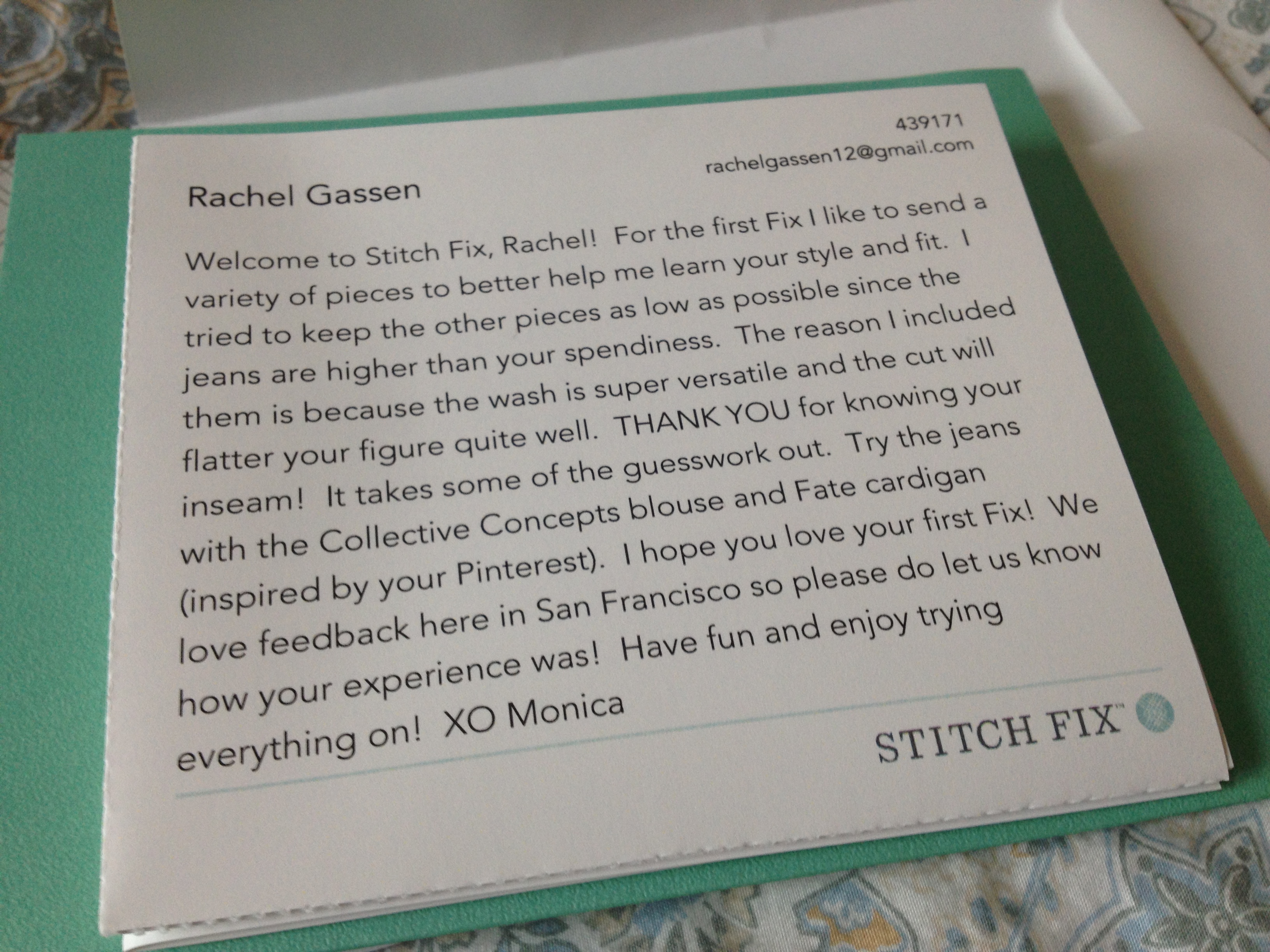 The letter from my personal stylist, Monica. I loved this detail, I wasn’t sure how computer-generated this would feel. I really feel like Monica is looking out for me! It’s awesome.