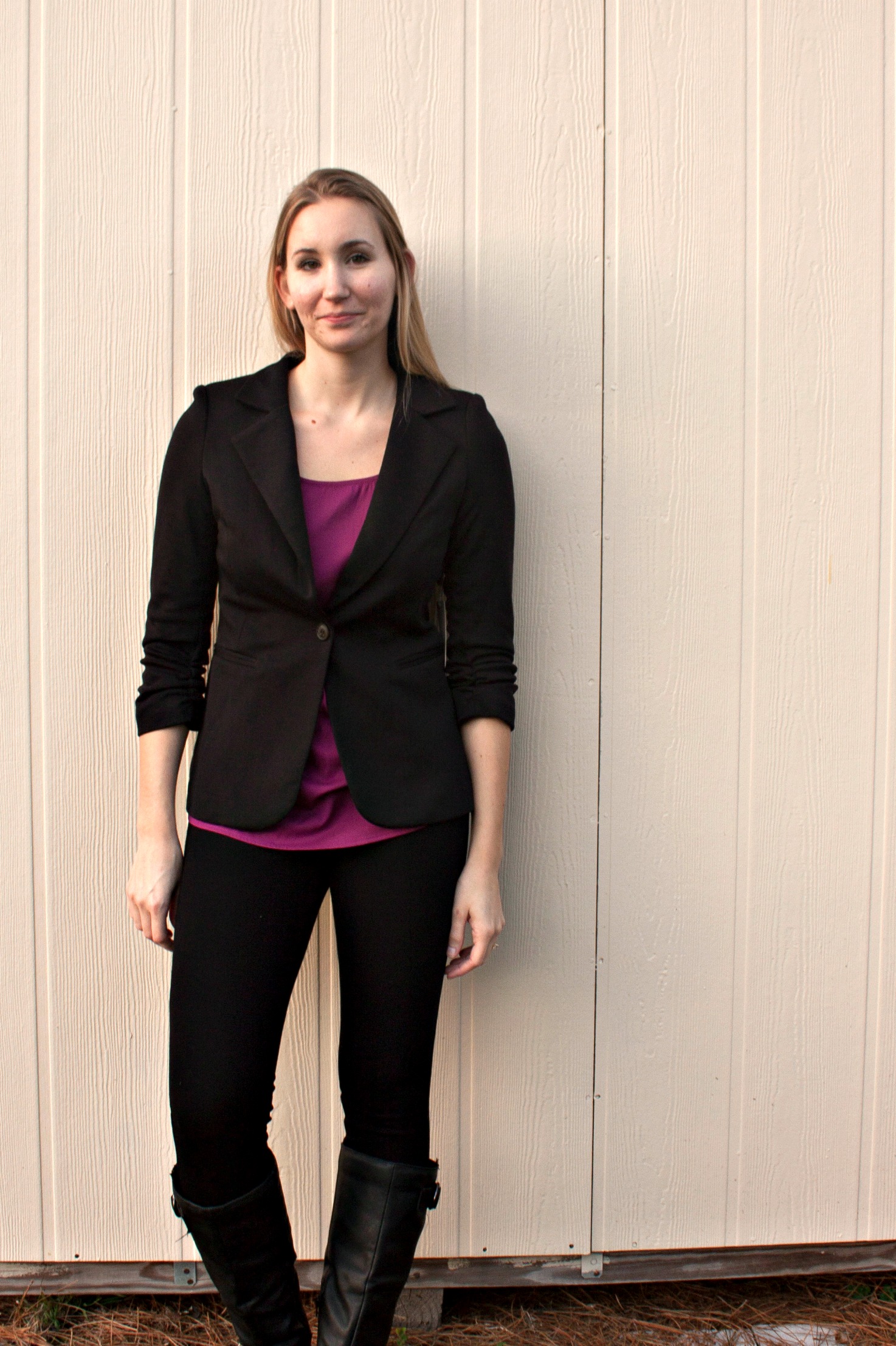 Well, if you know me, you know I have a very difficult time fitting into structured shoulders. I have very wide shoulders for a girl, which makes blazers almost impossible to find. What I really need to do is buy whatever size fits my shoulder, and get the waist tailored. My most recent suit purchase, I bought a 10 in the jacket & a 4 in the pants… awkward. Anyway, this jacket was actually REALLY close to fitting me well. The shoulders still felt a tad too small. It is a stretchy fabric and the 3/4 sleeves are great for my long arms. I’m actually going to request they send this exact item in a large, and I will buy it… then have the waist tailored.